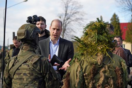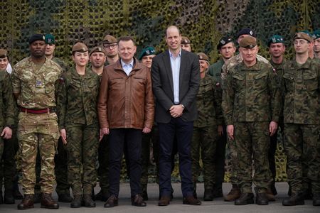 LONDON (Reuters) – Britain’s Prince William made an unannounced trip to Poland on Wednesday to thank British and Polish troops involved in providing support to Ukraine, before meeting refugees who have fled the conflict with Russia to hear of their experiences.