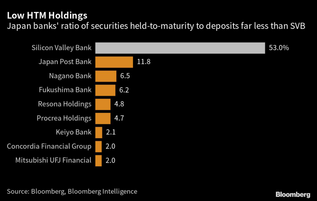But unlike SVB, Japanese banks tend to carry foreign bonds as available for sale, rather than held to maturity.