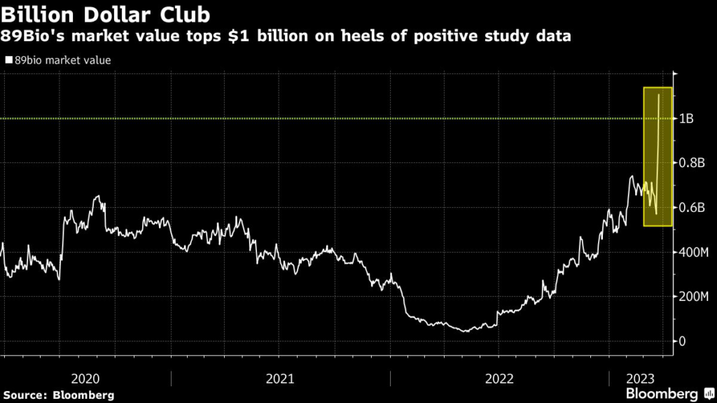 89Bio Inc. is poised for its best week in more than five months after revealing promising new data for a treatment of a common liver disease tied to obesity.