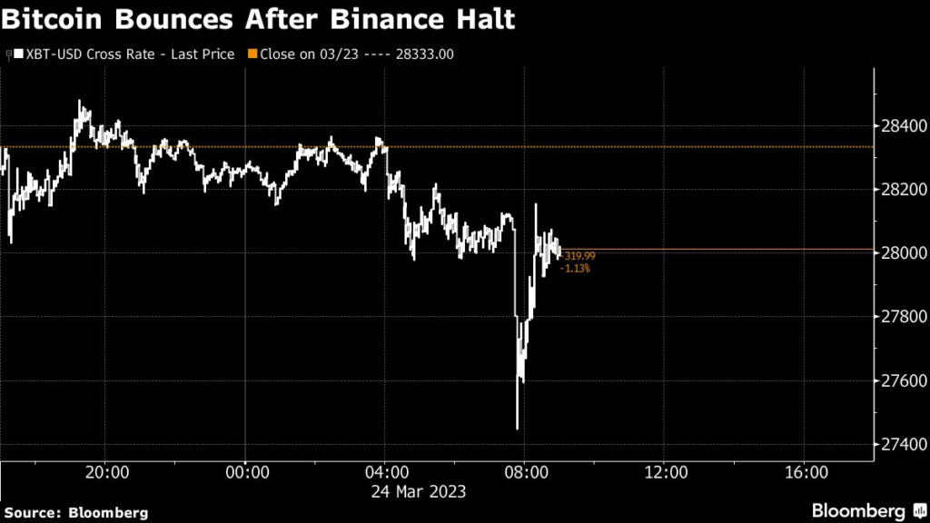 Bitcoin Lingers Near $28,000; Binance is Hit With Trading Halt