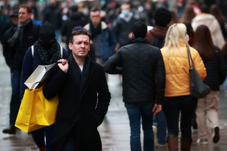 LONDON (Reuters) -Cash-strapped British households cut back on eating out and takeaways last month and instead bought food at supermarkets and shopped at discount stores, giving an unexpected boost to retail sales, official data showed on Friday.