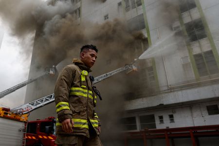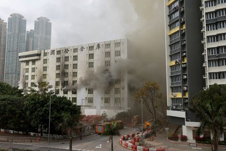 HONG KONG (Reuters) -Hong Kong firefighters battled on Friday to control a blaze at a warehouse in the city’s bustling Kowloon district, as yellow smoke billowed from windows and 1,600 people evacuated nearby buildings, although there were no reports of casualties yet.