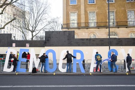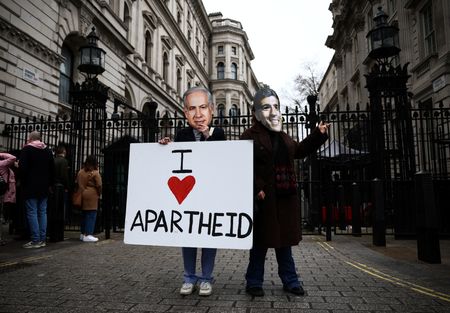 LONDON (Reuters) -British Prime Minister Rishi Sunak stressed the importance of upholding democratic values when he received Israeli counterpart Benjamin Netanyahu for talks on Friday, referring to a move to overhaul Israel’s judiciary that has stirred mass protests.