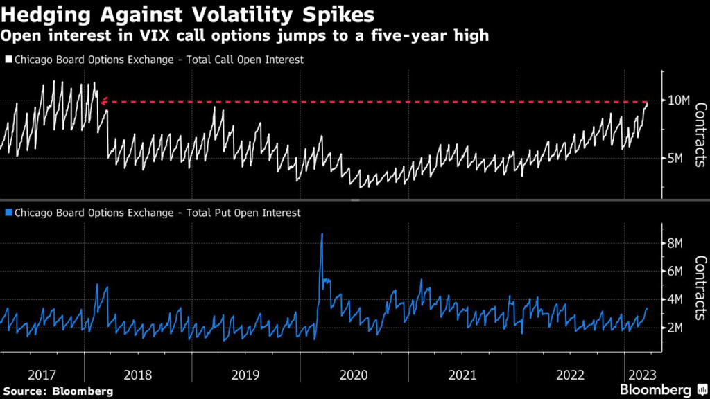 This week, protective call options on the VIX Index signaled traders bracing for a jump in volatility months from now.