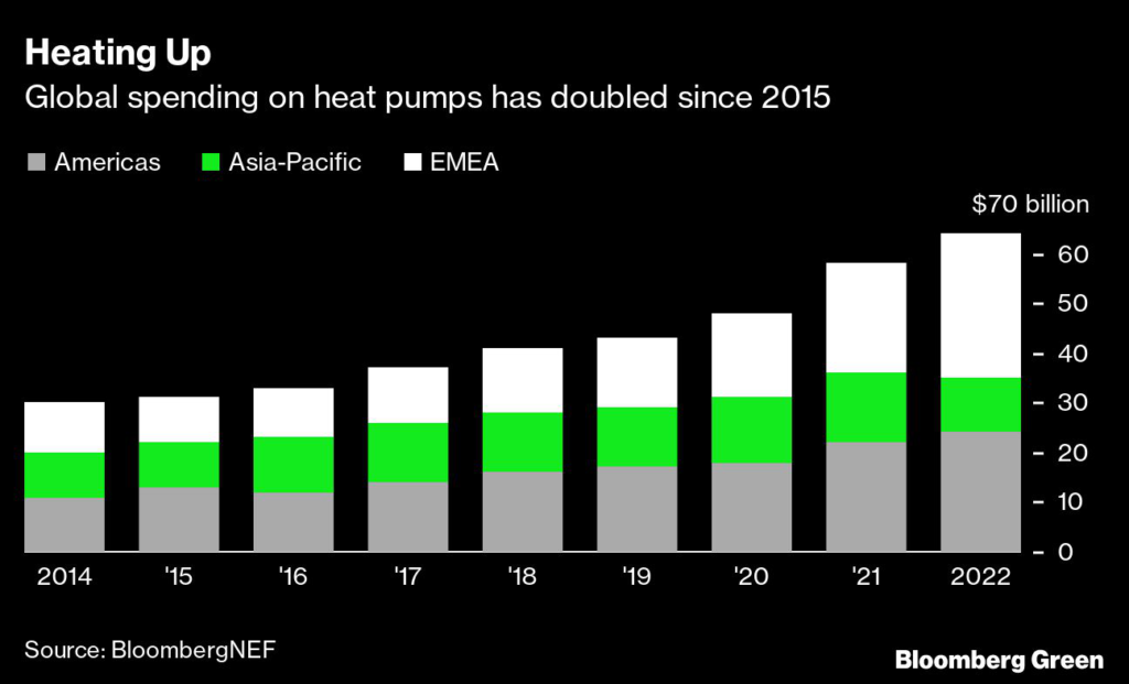 Spending on heat pumps has doubled since 2015, and government incentives, especially in Europe and the US, mean demand will continue to grow.