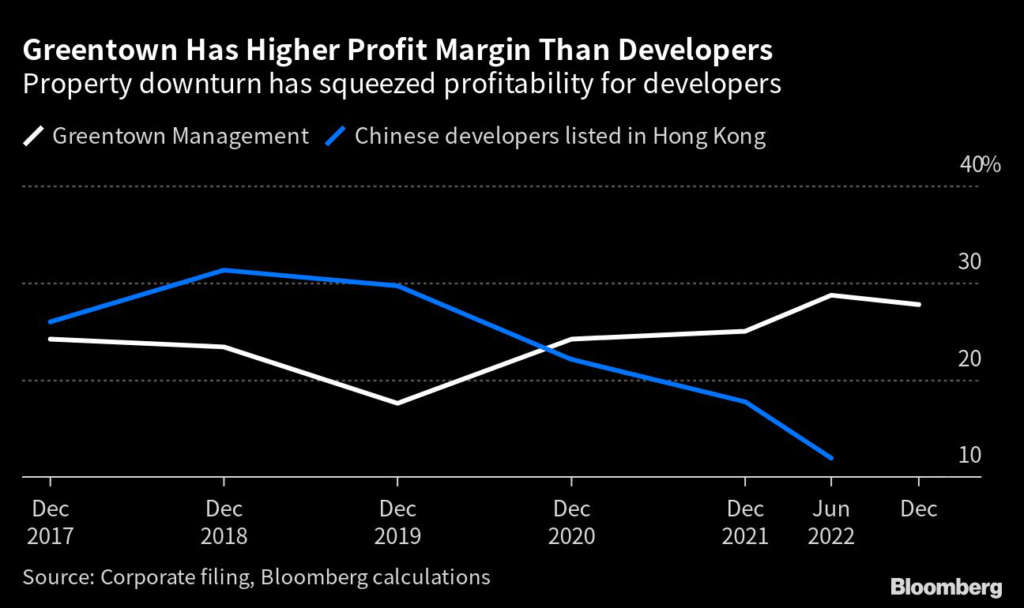 Not having to spend large amounts acquiring land has a lure for cash-strapped developers. Net margin at Greentown climbed to a record 29% for the six months ended June last year, almost triple the average profitability seen at 33 major mainland developers listed in Hong Kong.