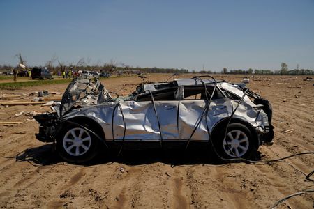 SILVER CITY, Mississippi (Reuters) -Rescuers combed through rubble on Saturday after a powerful storm tore across Mississippi late on Friday, killing at least 25 people there and one person in Alabama as it leveled hundreds of buildings and spawned at least one devastating tornado.