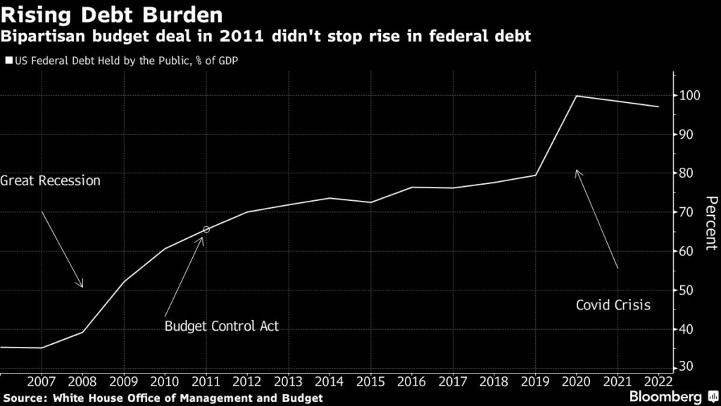 (Bloomberg) — A long term deal to raise the debt ceiling is increasingly out of reach as Speaker Kevin McCarthy amps up Republican demands for deep spending cuts in exchange for their agreement to increase the US borrowing limit and President Joe Biden refuses to negotiate.