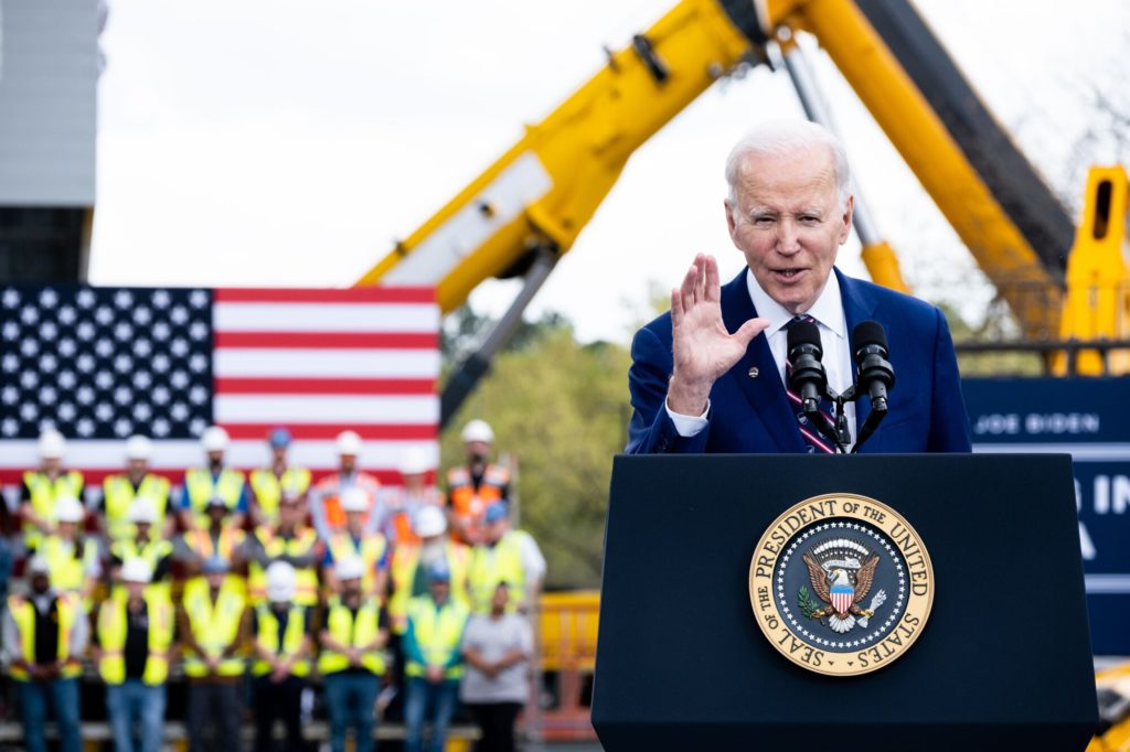 Biden visited the Durham factory of Wolfspeed Inc., a chip manufacturer, which has announced plans to invest $5 billion and create 1,800 new jobs, citing the investment as the result of his policies and warning that congressional Republicans would roll back those economic gains.