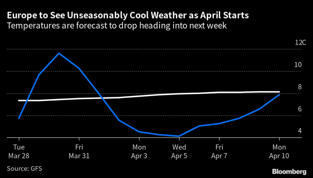 (Bloomberg) — Much of Europe will get hit by another cold spell next week as frigid temperatures in the north are spreading south across the continent.