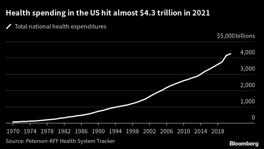 The US has the world’s most expensive health system, with annual costs of about $4.3 trillion in 2021, driven by opaque contracts, lack of disclosure and industry consolidation.