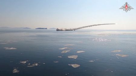 (Reuters) -Russia’s navy fired supersonic anti-ship missiles at a mock target in the Sea of Japan, the Russian defence ministry said on Tuesday.