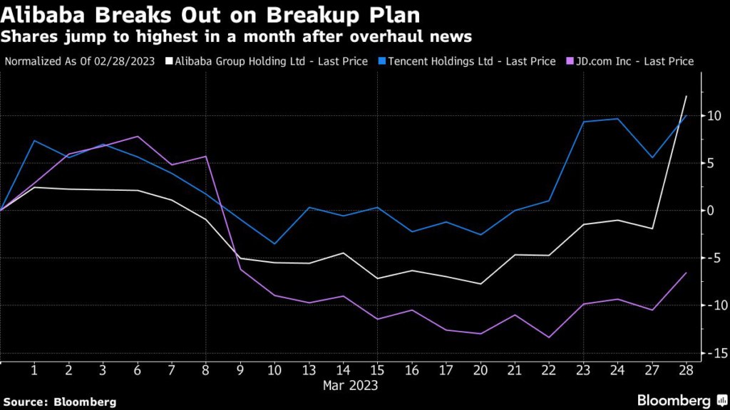 (Bloomberg) — Alibaba Group Holding Ltd.’s overhaul could serve as a template for a restructuring of China Tech itself: a shake-up that achieves Beijing’s aim of carving up the country’s tech titans while unlocking potentially billions of dollars in pent-up shareholder value.