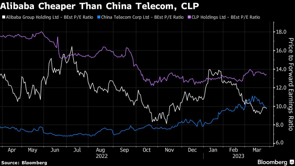and PDD Holdings Inc., which have double-digit multiples. The stock is even cheaper than utility firm CLP Holdings Ltd. and is valued on par with China Telecom Corp.