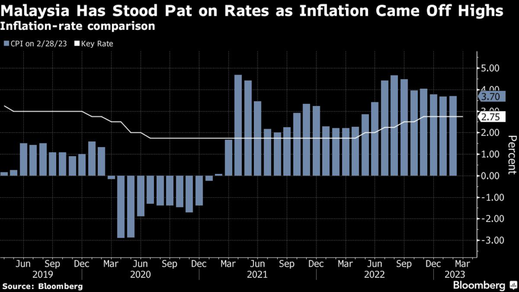 Malaysia, which was the first in the region to pause its tightening cycle to assess the impact of last year’s 100 basis-points of increases, has a growth trajectory that gives it some scope to resume hiking if required.