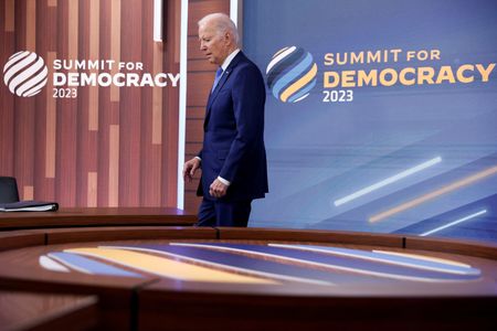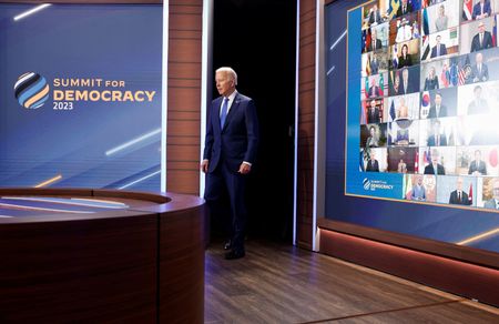 WASHINGTON (Reuters) -U.S. President Joe Biden announced new funding to bolster democracies around the world at a meeting on Wednesday, although dozens of countries were holding back on a summit declaration laying out commitments to democratic principles.