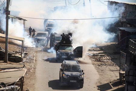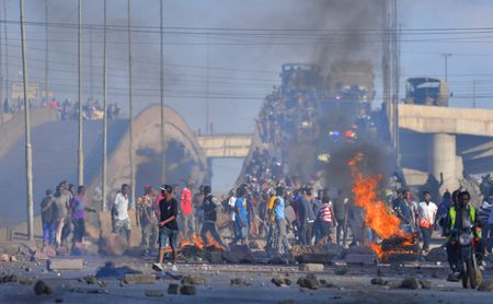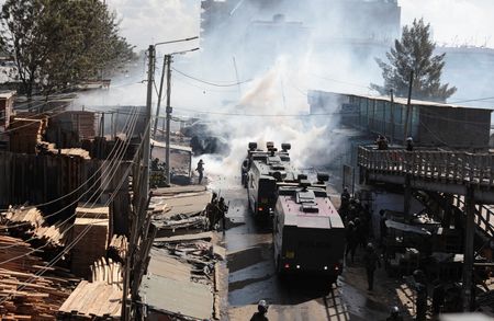NAIROBI (Reuters) -Protesters threw stones at police in Kenya’s capital and attackers set fire to an office run by the president’s party in a western town on Thursday during a third wave of demonstrations organised by his opponents.