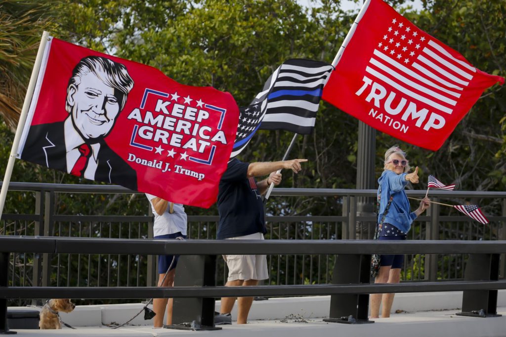 Throughout the day, small clutches of supporters gathered, waving American flags, some adorned with Trump’s face.