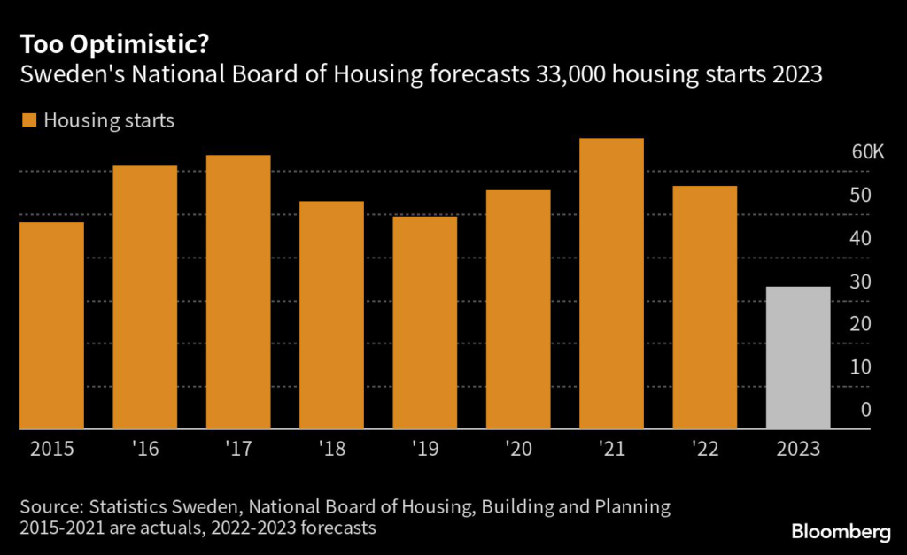 Its forecasts are lower than an earlier estimate from the Swedish National Board of Housing, which said in December that housing starts are likely to fall to 33,000 this year from an estimated 59,000 in 2022.