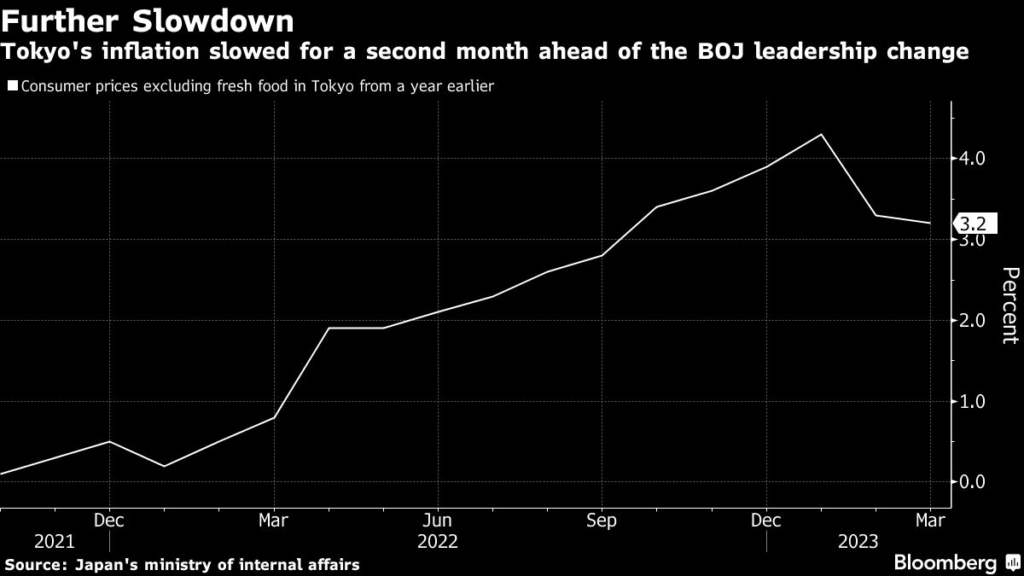 (Bloomberg) — Japanese economic data showed a steady recovery under way, even as inflation in Tokyo eased on the back of government power subsidies, sending mixed signals for incoming Bank of Japan Governor Kazuo Ueda.