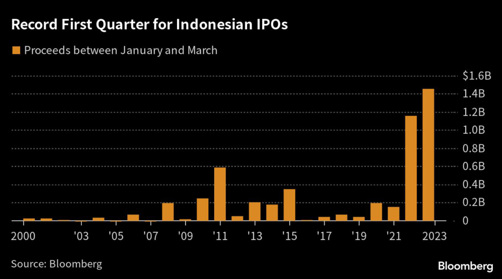 (Bloomberg) — Indonesia is proving to be a treasure trove of initial public offerings amid an extended global lull, beating some other major listing venues in total funds raised during the first quarter.