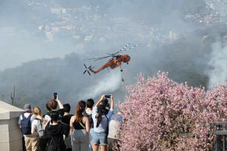The fire, which started on a mountain in the middle of Seoul at around 11:53 a.m.