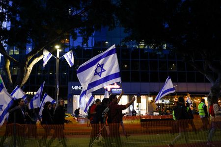 JERUSALEM (Reuters) – Protests against Israeli Prime Minister Benjamin Netanyahu’s judicial overhaul showed no sign of abating on Saturday, despite its suspension by the embattled premier this week, as tens of thousands took to the streets to demand it be scrapped entirely.