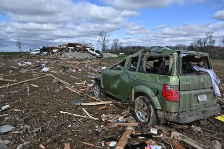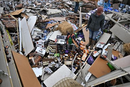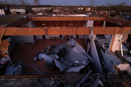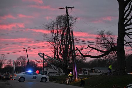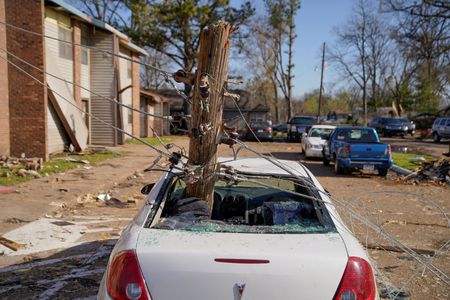 LITTLE ROCK, Arkansas (Reuters) – A violent storm packing high winds and heavy rains ripped through Southern and Midwestern sections of the United States as it headed east on Saturday, leaving at least 22 dead and scores injured, according to officials and media reports.
