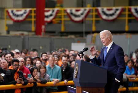 FRIDLEY, Minnesota (Reuters) – While the drama over Donald Trump’s arraignment unfolded in New York, President Joe Biden pressed ahead with his official duties, visiting the Midwestern state of Minnesota on Monday to talk about economic issues.