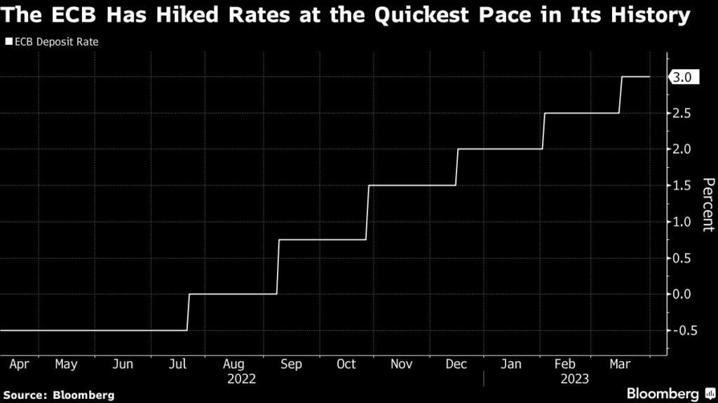ECB officials are pondering how high to push rates as the recent global banking turmoil threatens to weigh on lending and economic growth.