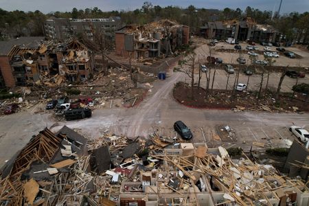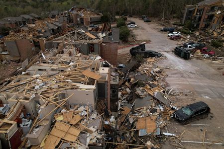 (Reuters) – The death toll from a violent storm that whipped up tornadoes in the southern and midwestern regions of the United States rose to at least 32 over the weekend, according to officials and media reports.