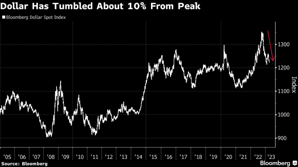 The greenback has already been in a downtrend, with Bloomberg’s gauge of the dollar falling 10% from last year’s high set in September.