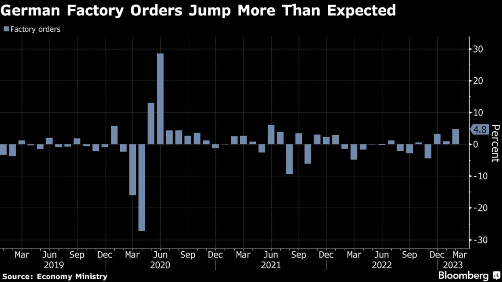 Demand rose 4.8% in February from the previous month — the biggest increase since June 2021 and better than the 0.3% median estimate in a Bloomberg poll of economists.