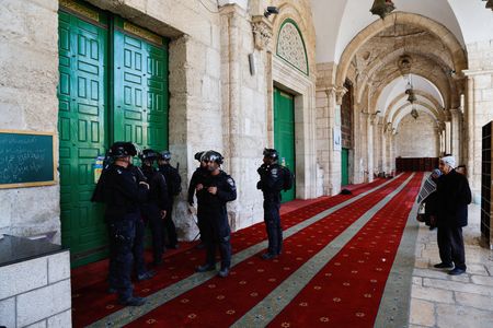 GAZA/JERUSALEM (Reuters) – Israeli police clashed with Palestinians at Jerusalem’s Al-Aqsa Mosque a second time on Wednesday, witnesses said, hours after the arrest and removal of more than 350 people in a police raid at the compound and despite a U.S.