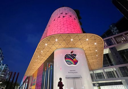MUMBAI (Reuters) -Apple Inc on Wednesday revealed the look of its first retail store in India, as several people tried to catch a glimpse outside the store’s black and yellow artwork patterned after Mumbai’s iconic taxis.
