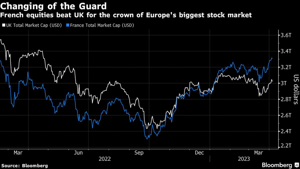 The rally in luxury shares has turned Paris into Europe’s top stock market, surpassing London, and the gap between the capitals has widened this year.