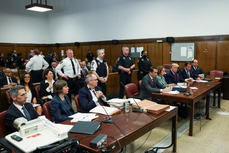 (Reuters) – Former President Donald Trump was charged in court on Tuesday with 34 felony counts of falsifying business records, as prosecutors accused him of paying two women to suppress their accounts of sexual encounters with him.