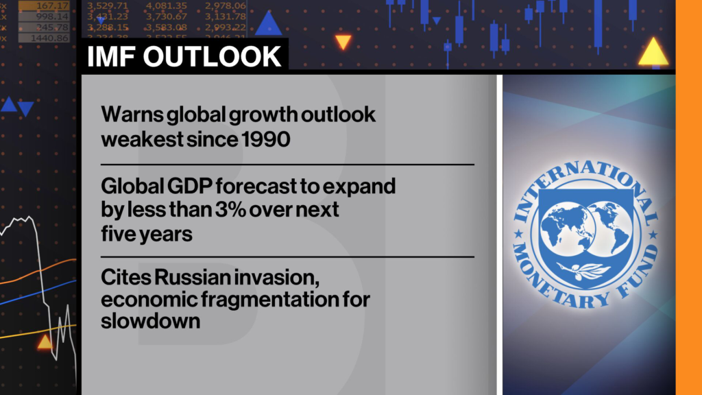 (Bloomberg) — The International Monetary Fund warned that its outlook for global economic growth over the next five years is the weakest in more than three decades, urging nations to avoid economic fragmentation caused by geopolitical tension and take steps to bolster productivity.