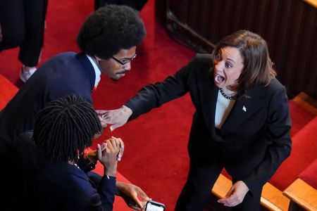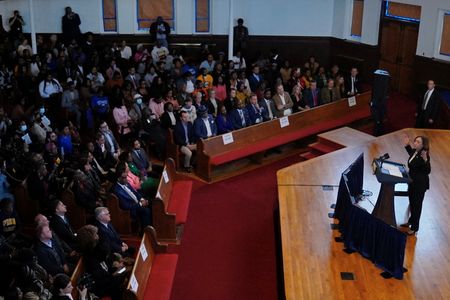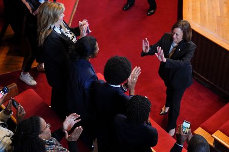 NASHVILLE (Reuters) -U.S. Vice President Kamala Harris flew to Nashville on Friday in a show of support for Tennessee state lawmakers expelled for staging a rule-breaking demonstration for gun control on the statehouse floor after a recent school shooting.