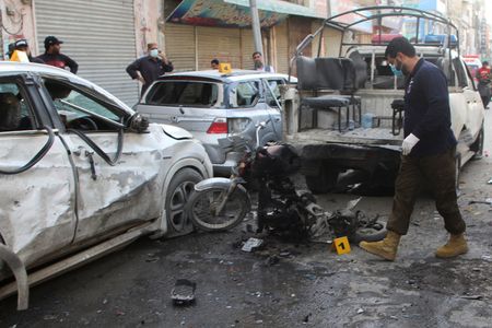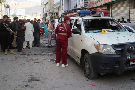 QUETTA, Pakistan (Reuters) -Four people were killed and 15 injured in a bombing targeting a police vehicle in a marketplace in the southwestern Pakistani city of Quetta on Monday, a hospital official said.