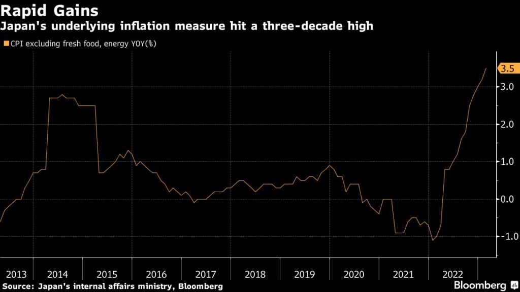 Fast forward to today, and the economy Ueda is tackling is still below its pre-pandemic level, and faces risk of a global slowdown making the recovery even slower. Inflation dynamics have shown increasing signs of shifting as businesses pass higher costs onto consumers at the fastest pace in decades, and deciding to raise wages by the most since the early 1990s.