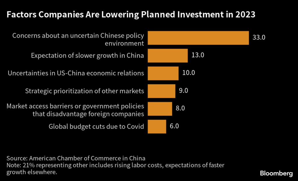 A survey it conducted last year showed that 23% respondents were considering shifting their current or planned investments out of China, the highest on record.