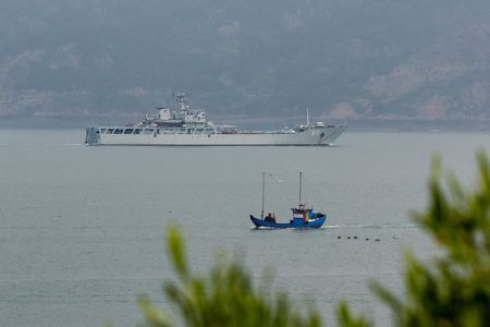 TAIPEI (Reuters) -The Chinese navy continued with “actual combat training” around Taiwan on Tuesday, state media said, a day after Beijing announced the end of drills and as Taiwan President Tsai Ing-wen criticised China for its “irresponsible” behaviour.