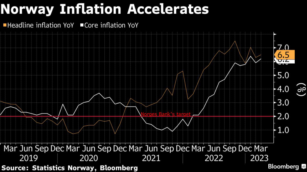 That compares with a median projection of 6.1% by economists in a Bloomberg poll, while the central bank had forecast 6.0%. Core inflation, the measure followed by Norges Bank, was in line with projections.