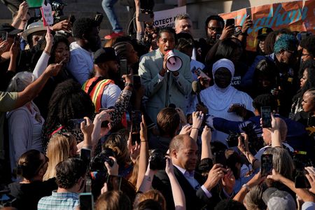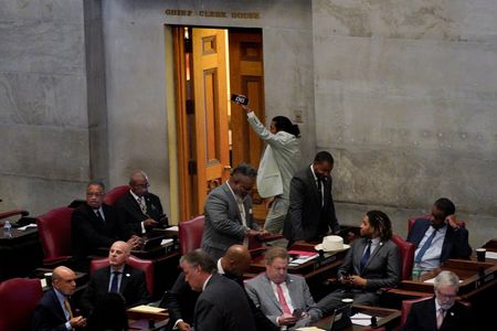 NASHVILLE, Tennessee (Reuters) -Tennessee state Representative Justin Jones returned to the state House on Monday, pumping his fist and declaring “power to the people” as a Nashville-area council restored him to office following his expulsion over a gun protest.