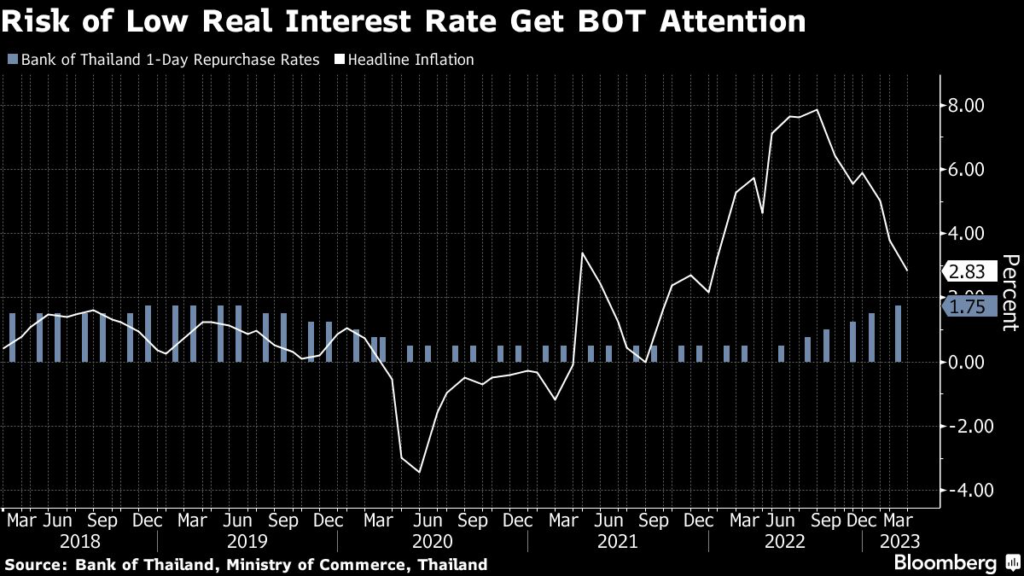 (Bloomberg) — Thailand’s monetary policy decision makers will pay more attention to the role of low real interest rates in “engendering a build-up of economic imbalance,” a report showed Wednesday, as the central bank reiterated its stance of a gradual tightening amid lingering inflation concerns.