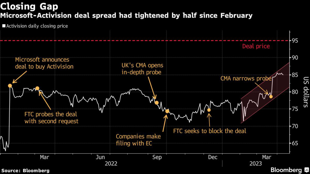 According to Aaron Glick, a merger arbitrate strategist at Cowen & Co., last month’s move by the CMA significantly boosted sentiment about the deal closing.