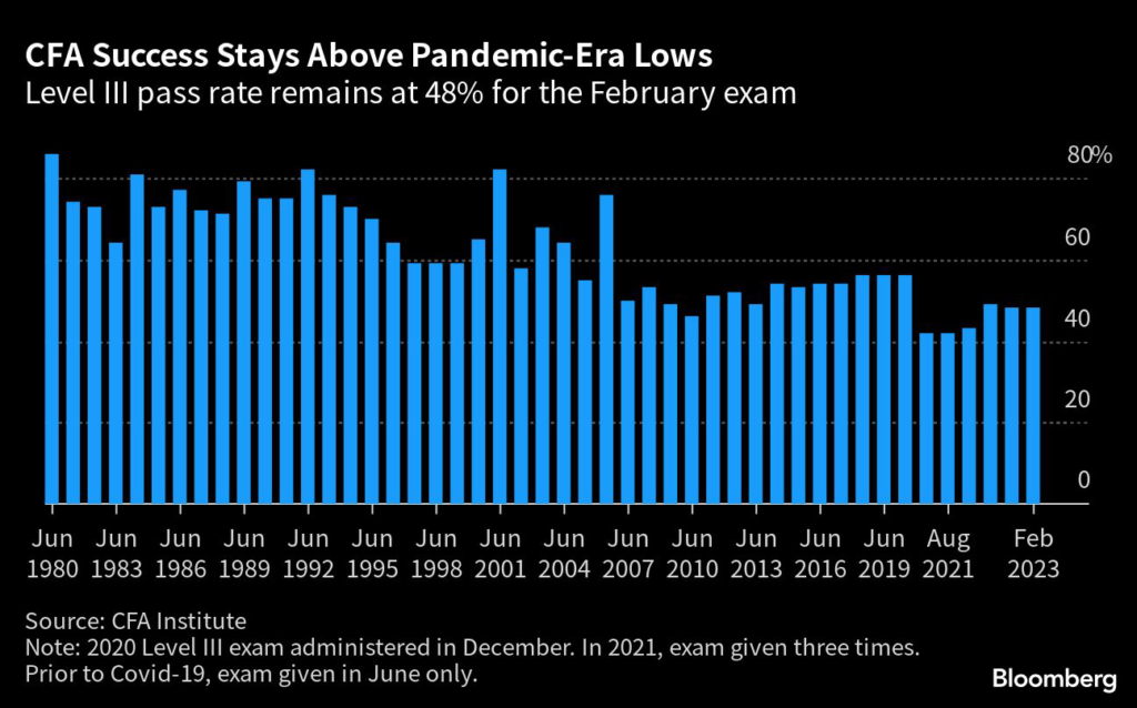 Still, the rate was higher than the historic low of 42% for passing Level III set in 2021. The 10-year average success rate for the final exam is 52%, according to the CFA Institute.