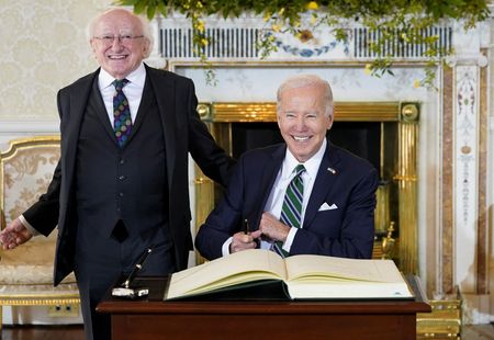DUBLIN (Reuters) -U.S. President Joe Biden told the Irish parliament he was “home” in an emotional address on the second day of a nostalgic three-day tour celebrating his Irish heritage as he geared up for a planned 2024 re-election campaign.