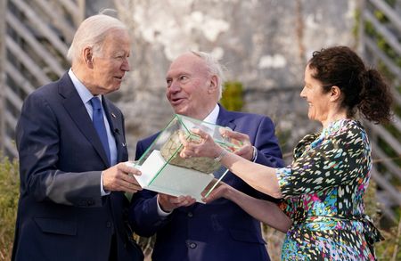 BALLINA, Ireland (Reuters) -Thousands took to the streets of U.S. President Joe Biden’s ancestral home town in the west of Ireland on Friday for a farewell rally to end a nostalgic three-day state visit ahead of what is expected to be a grueling 2024 re-election bid.